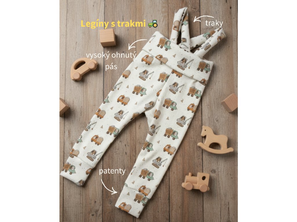 Traky a ohrnutý pás pridávajú legínam originálny vzhľad a dodávajú im roztomilosť. Zároveň sú funkčné, pretože eliminujú potrebu neustáleho naťahovania pása, čo ocenia najmä rodičia aktívnych detí.