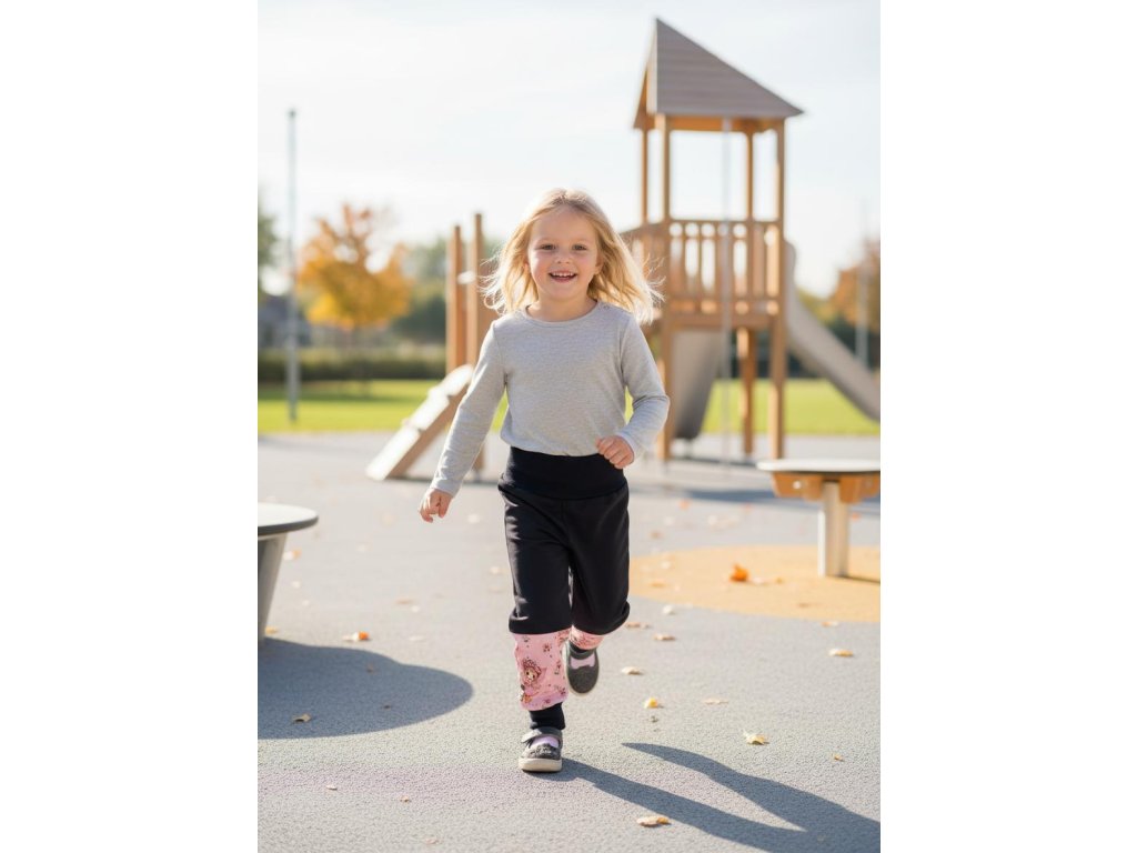 Pohodlný strih umožňuje voľnosť pohybu, takže skákanie do mlák, lezenie po preliezačkách či behanie po dvore je hračka. Predĺžené nohavice a praktická dvojveľkosť zaručia, že vydržia dlhšie a porastú spolu s vaším drobcom.