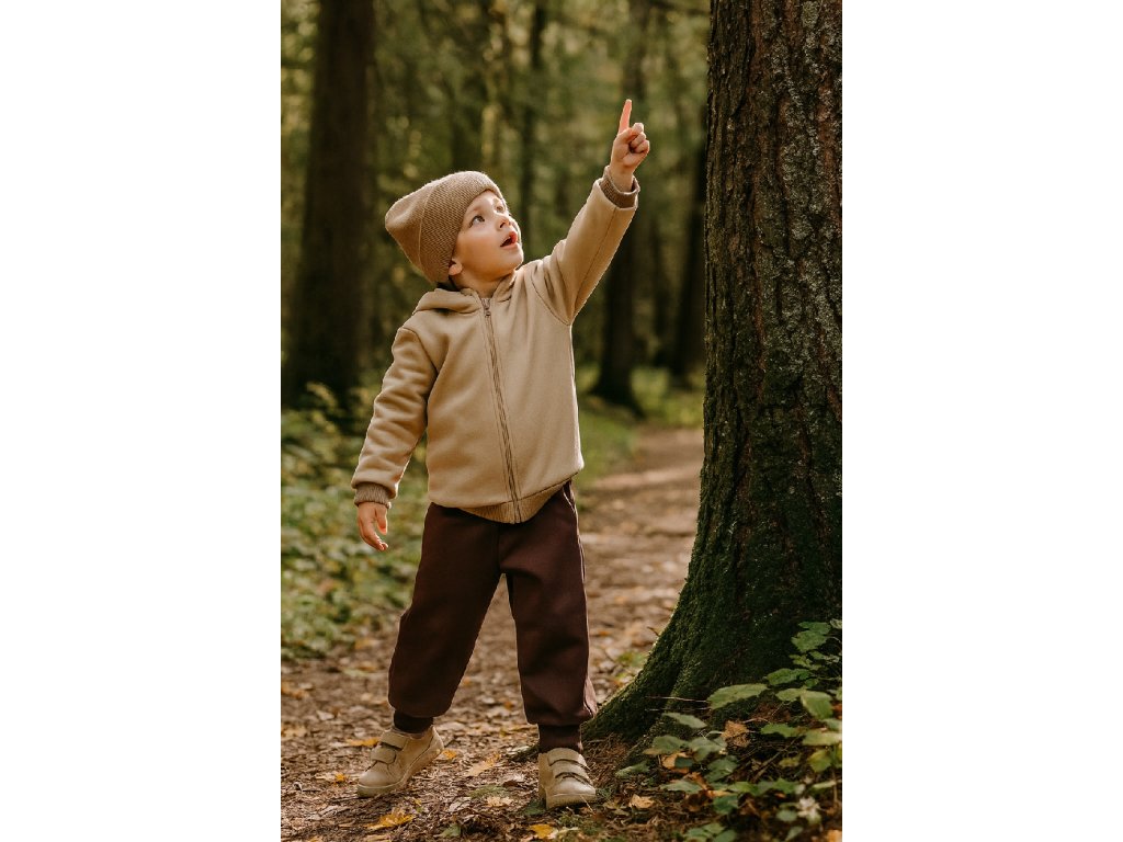 Detské softshellové nohavice do chladného a premenlivého počasia. Vetro- a vodoodolné z líca, mäkké a hrejivé z rubu. Pohodlný strih s rezervou na rast – spodný lem a pás pekne podržia aj pri skákaní a lození.