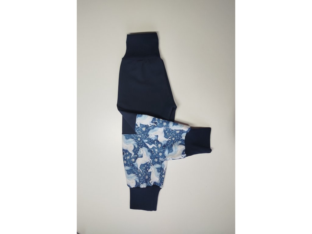 Softshellové nohavice s fleecom jednorožec modrý