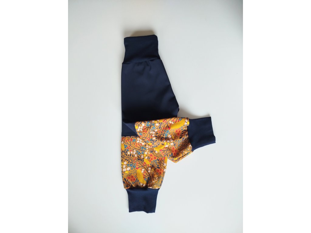 Softshellové nohavice s fleecom jesenné kvety horčicovo modré 92/98