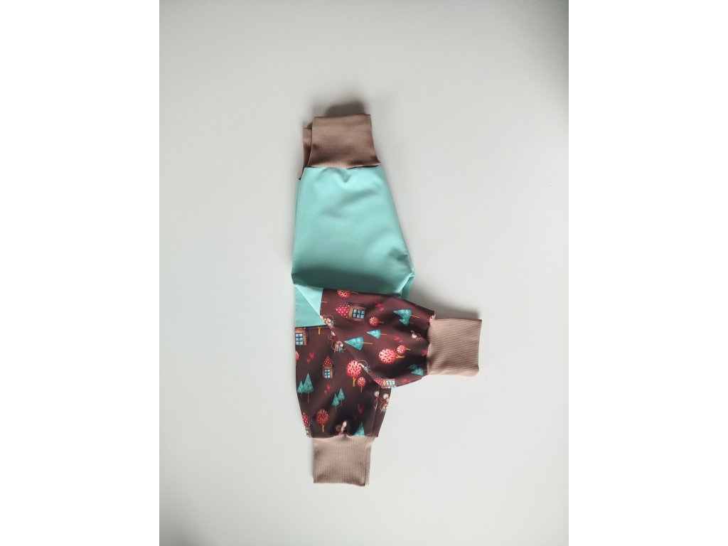 Softshellové nohavice s fleecom myška hnedá a mentol 92/98