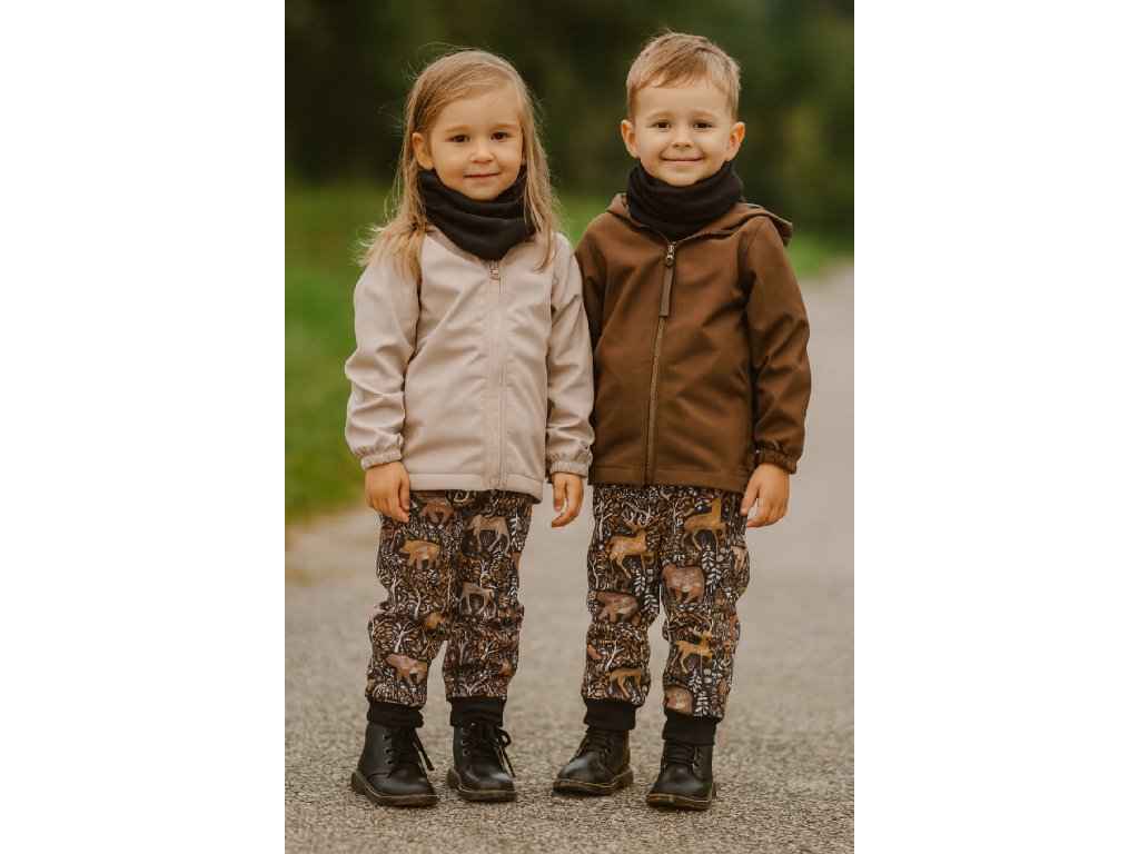 Detské softshellové nohavice do chladného a premenlivého počasia. Vetro- a vodoodolné z líca, mäkké a hrejivé z rubu. Pohodlný strih s rezervou na rast – spodný lem a pás pekne podržia aj pri skákaní a lození.